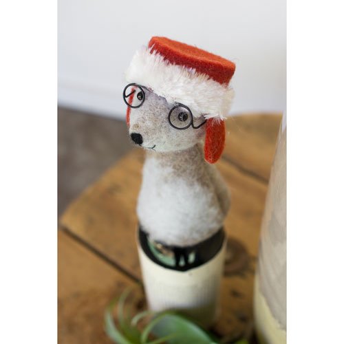 - The Kalalou Felt Santa Hat & Glasses Dog Wine Topper is the perfect holiday accessory.