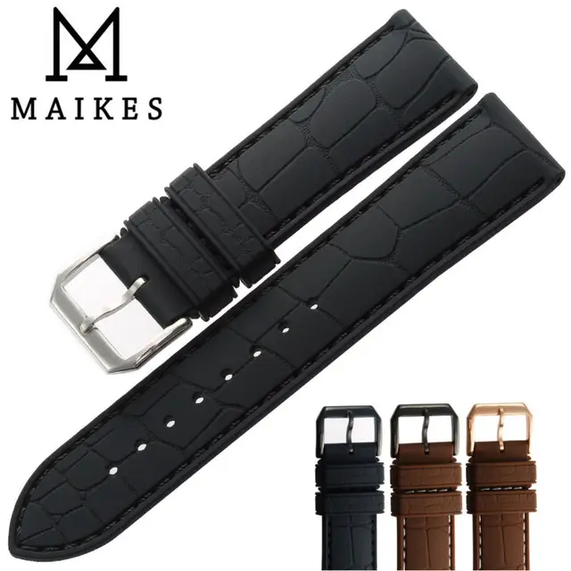 MAIKES 태그 새로운 3D 악어 가죽 곡물 블랙 손목 20 미리메터 22 미리메터 남성 실리콘 고무 시계 밴드 스트랩