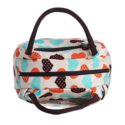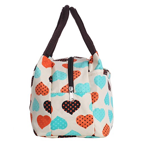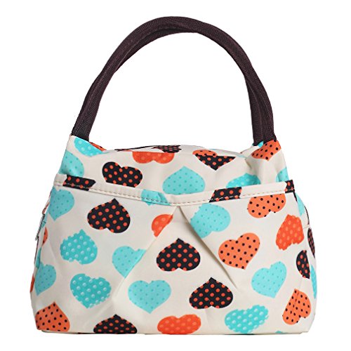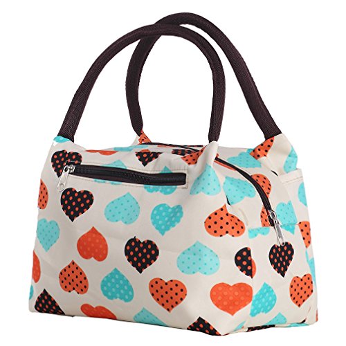 ZXKE Dots Print Design Women Bag Lunch Bag Tote (Love hearts beige)