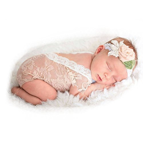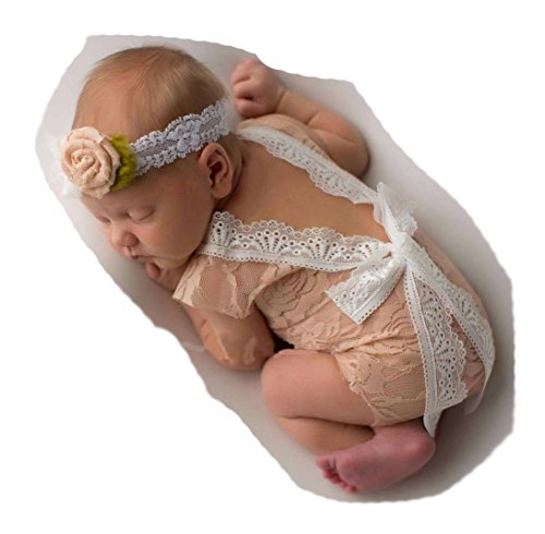 Newborn Baby Girl Soft Lace Romper, Besutana Infant Lace Floral Bodysuit Photo Props