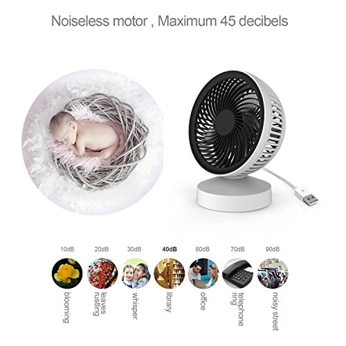 Desk Fan Quiet,Anweer Small Easy to Clean and Adjustable Angle Mini USB Desk Fan with 7 Blades for Home Office Computer Desk, Work Desk, Living Room, Bedroom, Black-White