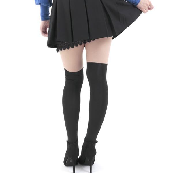 | ニーハイソックスを履いた様に見える ニーハイストッキング ニーハイタイツ 無地 黒 ブラック 【ニーハイタイツ レディース 女性 黒 ニーハイソックス フェイクニーハイ ストッキング ニーハイ タイツ セクシー 網タイツ】 |