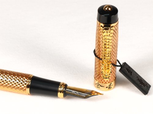 -. Feature : Deluxe golden style,classical Chinese dragon carved / Length(Approx): 140mm Weight(Approx): 38g Diameter:12mm / NIB M 22KGP Cap: PUSH ON /OFF / INK CARTRIDGE INTERNATIONAL STANDARD