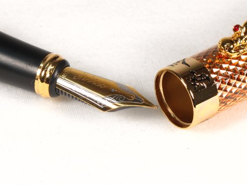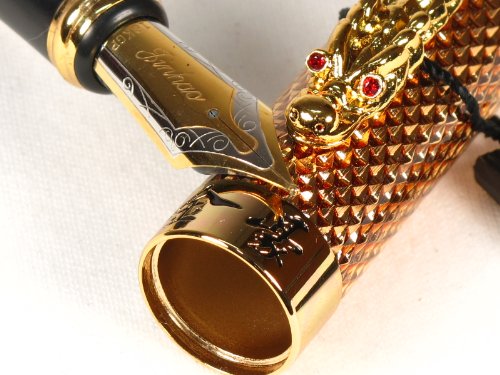 -. Title : Deluxe Fountain Pen Dragon Clip Deluxe Golden Style,classical Chinese Dragon Carved with Push in Style Ink Converter