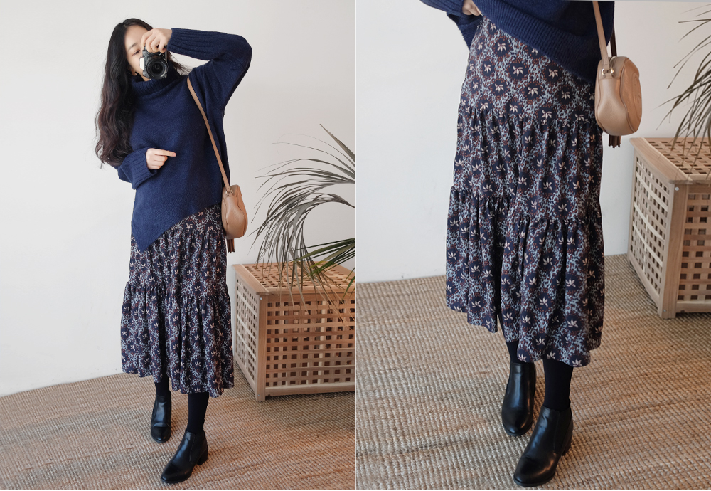 쉬폰 소재로 센슈얼하게 느껴지는 롱 프릴스커트 소개해드려요:)