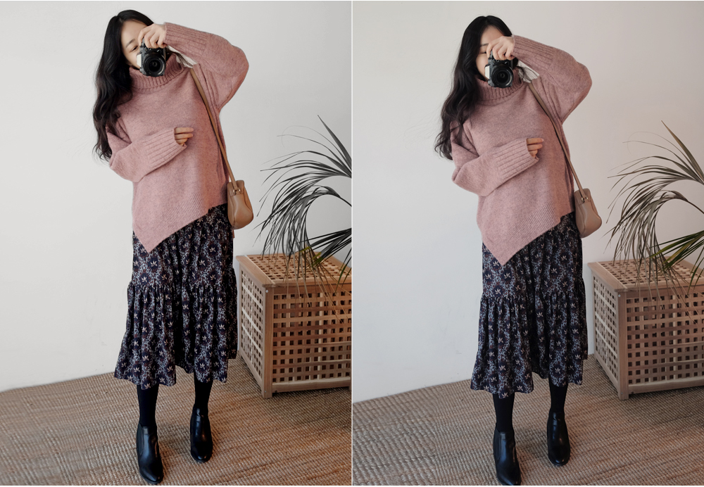 롱한 기장과 밑으로 촤르르 떨어지는 유연한 핏으로 더욱 여리해 보이고,