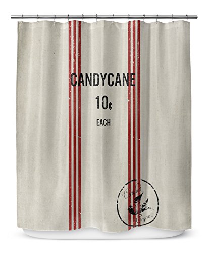 KAVKA Designs Candy Cane Shower Curtain, (Ivory/Red/Black) - TRADITIONS Collection, Size: 70x72 - (TELAVC1027SPLSC)