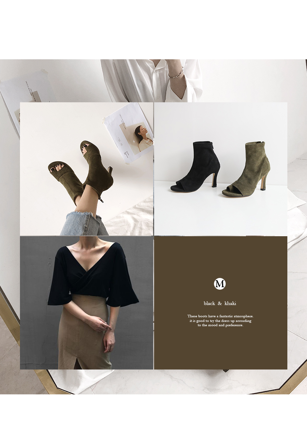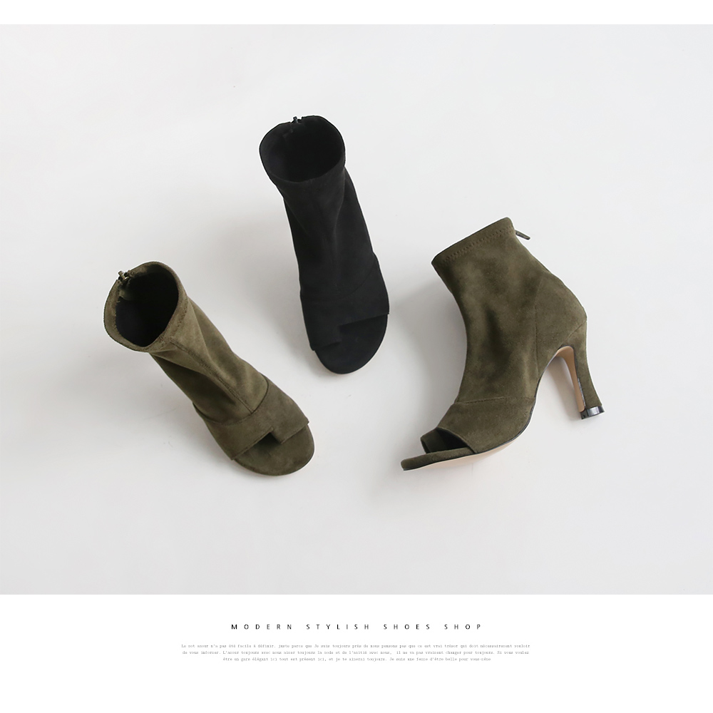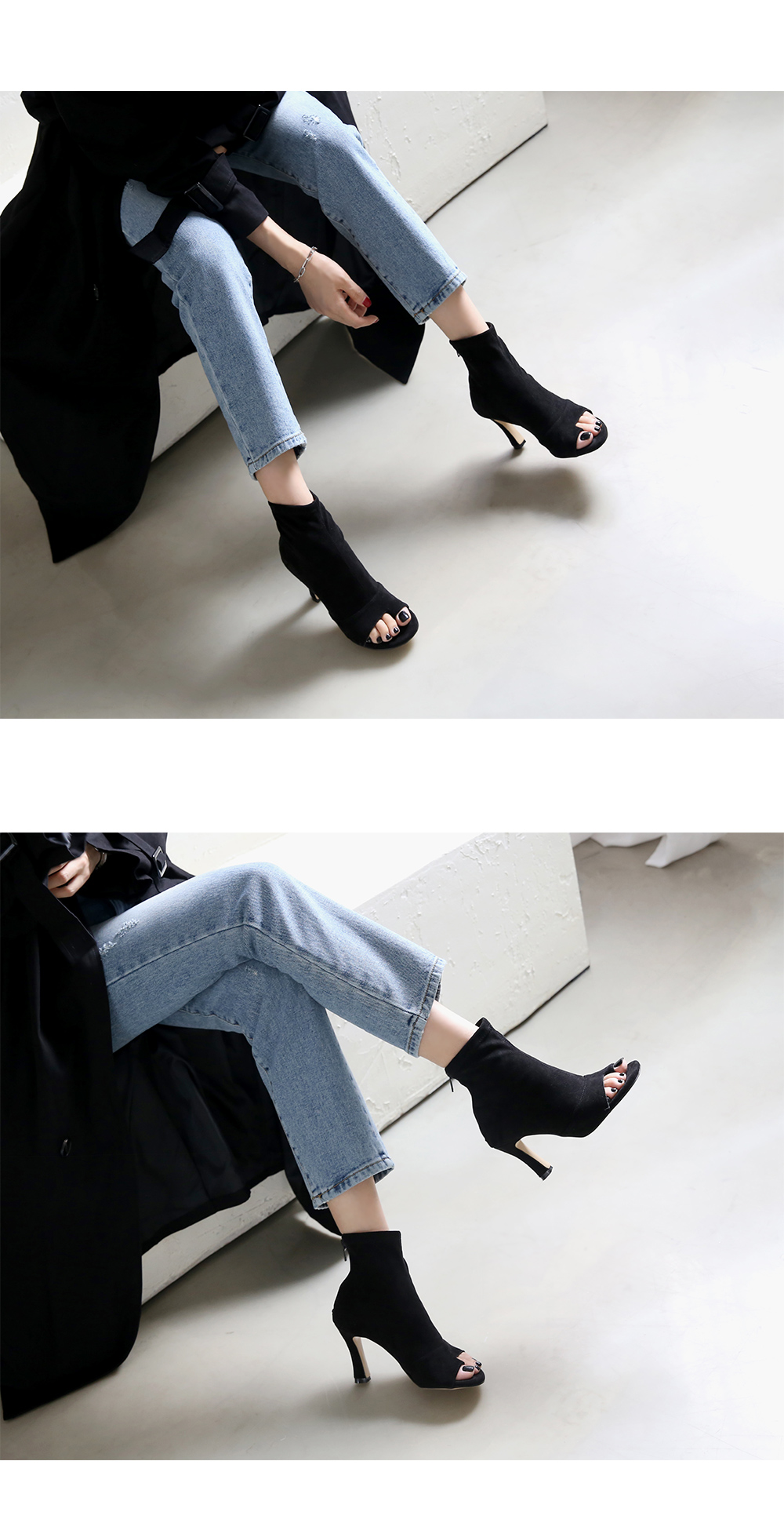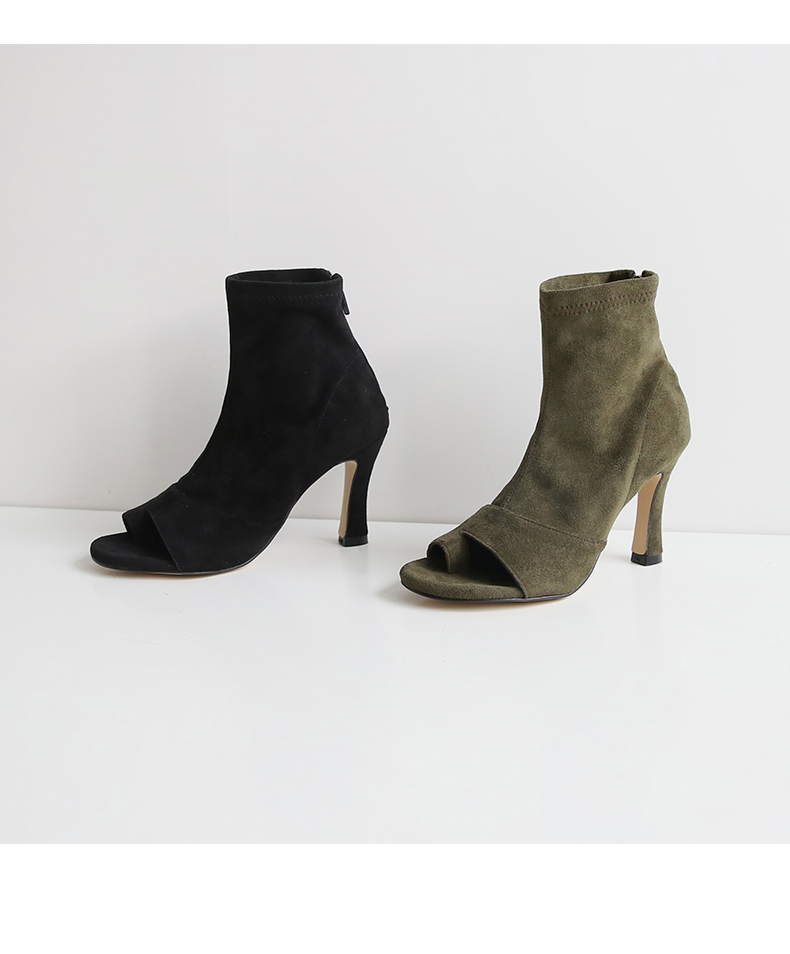 입구에 스판성이 조금 내재되어 신기 편한 하이힐류의 오픈토 앵클부츠입니다.