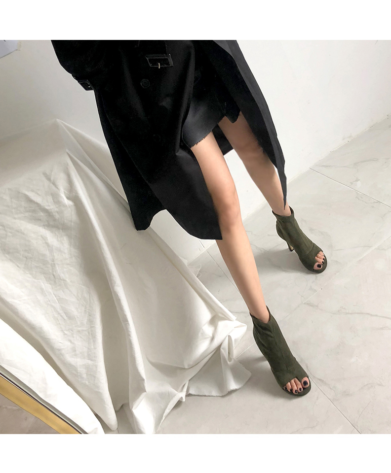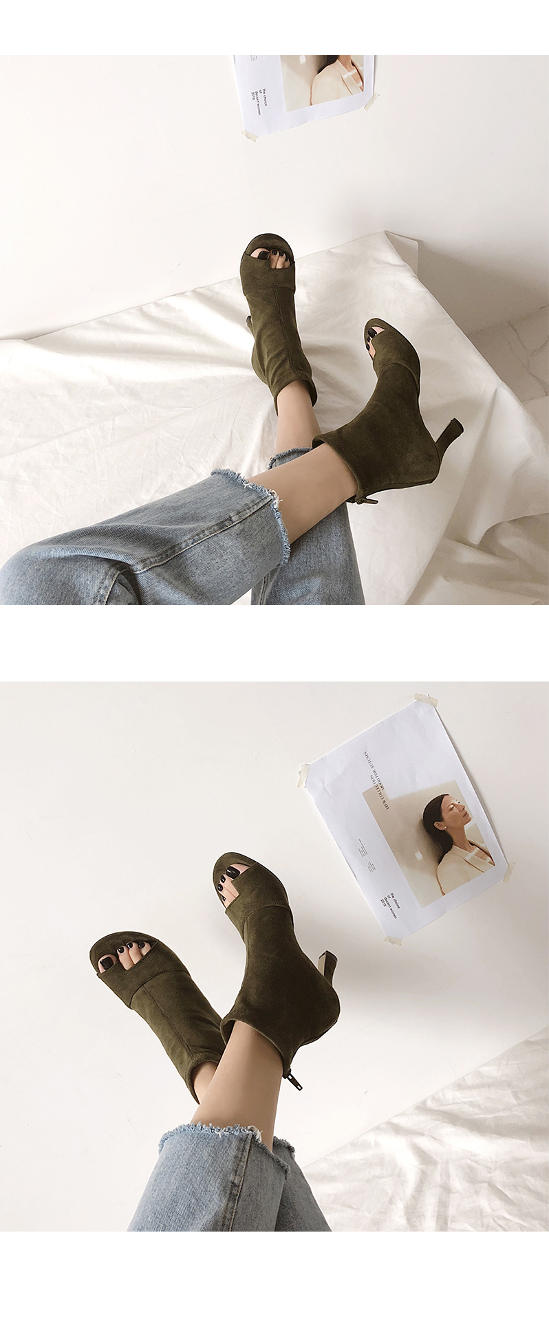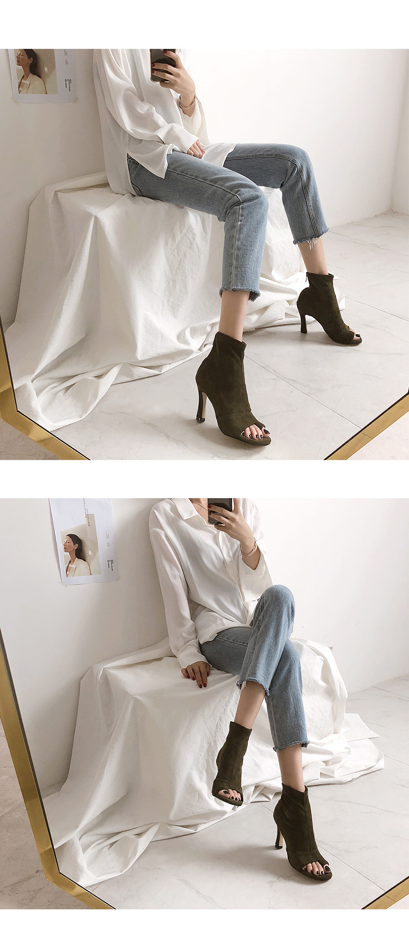 입구에 스판성이 조금 내재되어 신기 편한 하이힐류의 오픈토 앵클부츠입니다.