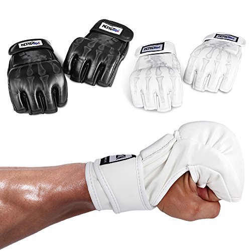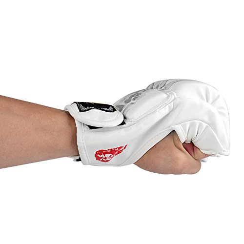 Studio : Flexzion Publisher : Flexzion Binding : Misc. Product Description It is a common dream for each boxing lover to own a pair of durable and fashionable boxing gloves. Here we are excited to recommend this pair of PU Leather skull fingers Boxing Gloves to you. It will provide you with the best protection in daily training. Adopting high-class PU leather, it is tough enough for long-term use. It keeps your thumb in an ergonomically correct position. Helps prevent injury and improves comfort. Special design improves comfort and safety. Material: PU Leather. Suitable Group: Man. Dimensions: 22 x 11 x 3.5 cm / 8.66 x 4.33 x 1.38 in (L x W x H). Color: Blue / White / Red. Weight: 220 g / 7.76 oz 0