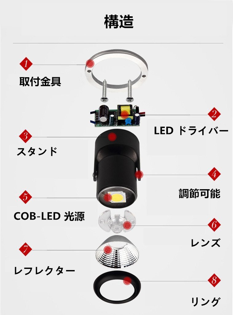 ① Remove the round mounting bracket from the light body and fix it to the ceiling with screws.