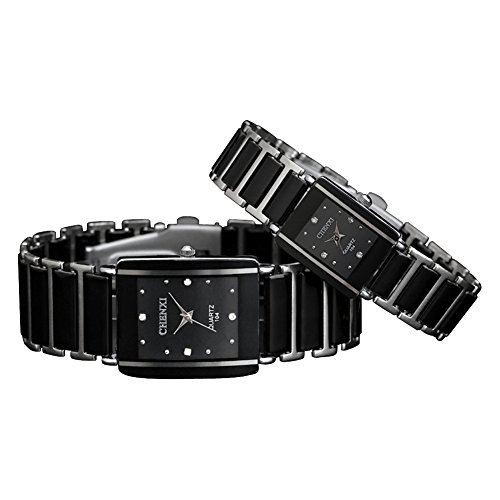 Fq-104 Stainless Steel Rectangle Pair His and Hers Couples Wrist Watches for Lovers Black(set of 2)