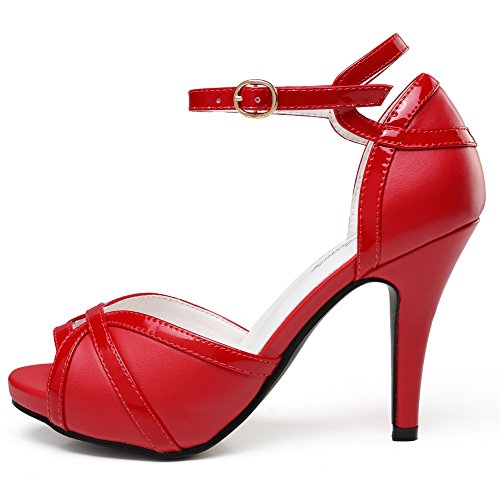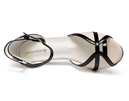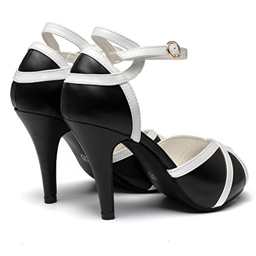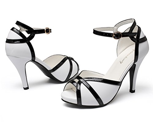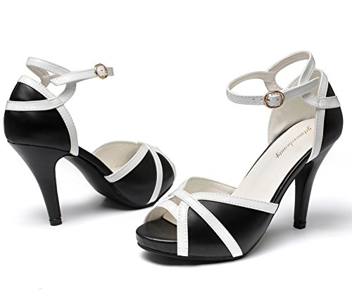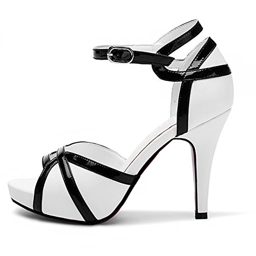 | Getmorebeauty Women's White Black Peep Toes Buckle Dress Heeled Sandals |