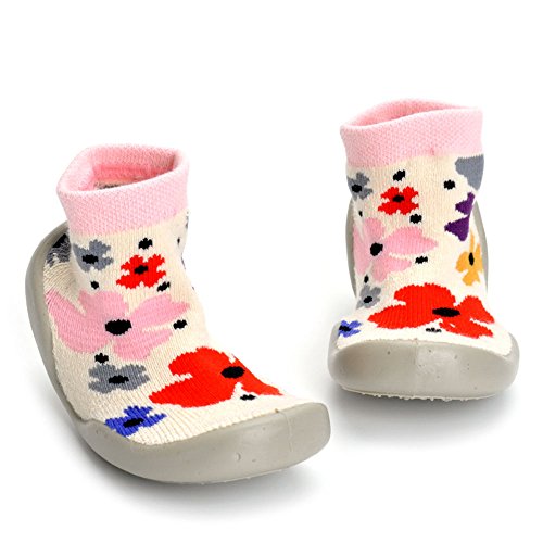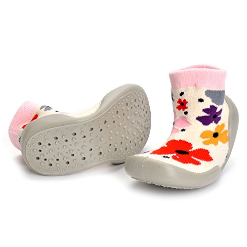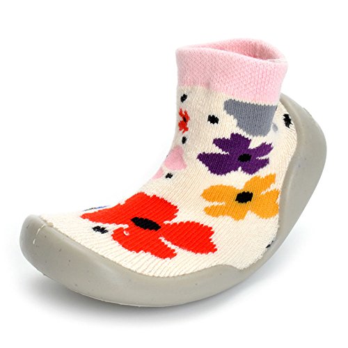 Binding : Apparel Product Description No more struggling to put on socks and shoes and then realizing you've lost a shoe somewhere. OurLIVEBOX Baby Cotton Sock Shoesare as easy to pull on as socks. They have a flexible rubber sole which allows toddlers feet to move, flex and spread in the natural form of their feet. You'll notice your toddler growing in confidence as they feel more stable. They'll trip and slip less which means less bumps and bruises.