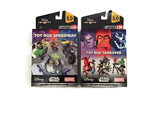 -. Binding : Video Game -. Brand : Disney Infinity -. EAN : 0757583580008 -. ESRBAgeRating : Everyone -. Feature : Expand Your Adventures in the Toy Box / Unlock additional hours of gameplay inside Toy Box 3.0 / se some of your favorite Star WarsTM, MARVEL, Disney•Pixar characters in Disney Infinity to battle across multiple worlds and defeat the bad guys before they ruin the Toy Box forever! / Get set for action-packed kart-style racing with some of your favorite Star WarsTM, MARVEL, Disney and Disney•Pixar characters. -. Genre : Adventure Games -. HardwarePlatform : Nintendo Wii -. Label : Disney Infinity -. Manufacturer : Disney Infinity -. OperatingSystem : Xbox 360 -. Platform : Xbox 360 -. ProductGroup : Video Games -. ProductTypeName : CONSOLE_VIDEO_GAMES -. Publisher : Disney Infinity -. Studio : Disney Infinity -. Title : Disney Infinity 3.0 Edition: Toy Box Takeover and Toy Box Speedway Game Expansion Bundle - Not Machine Specific -. UPC : 757583580008