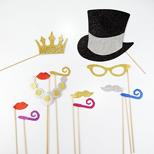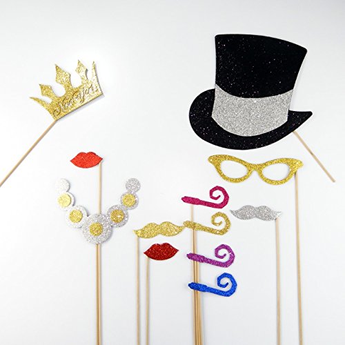 12 PC New Years Photo Booth Party Props Glitter Foamy