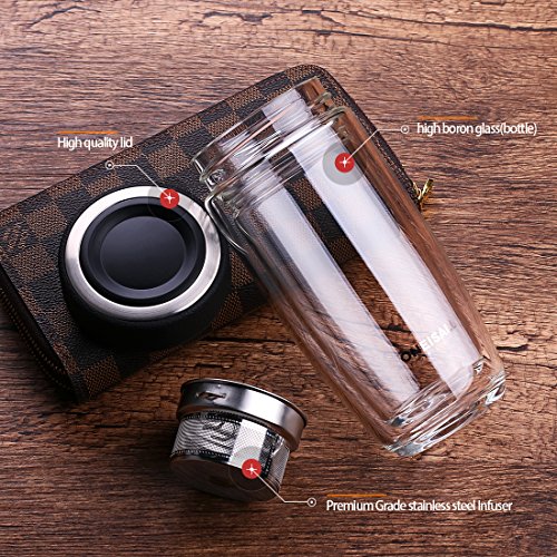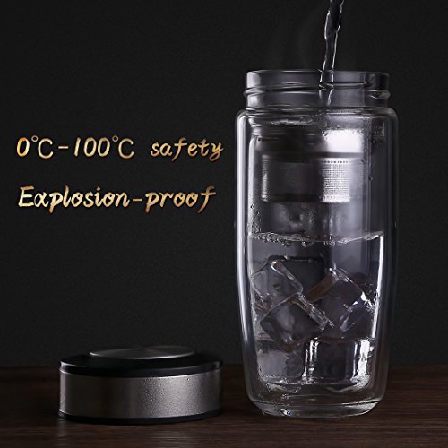 Studio : ShengYuanTai Publisher : ShengYuanTai Binding : Misc. Product Description 380ML 13oz(ounces) Capacity. Material: high borosilicate glass, BPA-free. With stainless steel Strainer, enjoy your leaf tea or other flower tea. Made from high quality borosilicate glass material, heat resistance, with PP lid, elegant and stylish looking. Double-wall glass design, prevent your hand from scald. Suitable for hot or ice water, flower tea or you can drinking juice just as you love. Glass Bearing temperature: Minus 20 degree Celsius-150 degree Celsius. Size(approx.): 8 x 17cm(D*H) , Net Weight:480G