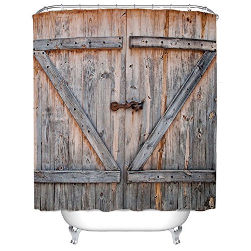 Vintage Rustic Wood Theme Polyester Fabric Shower Curtain 48 Wide X72 Long Inches, Country Decor Old Wooden Garage Door American Country Style Decorations for Bathroomc Print,Home Antiqued Look