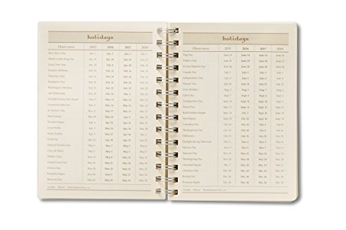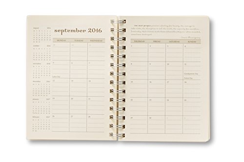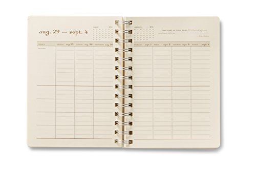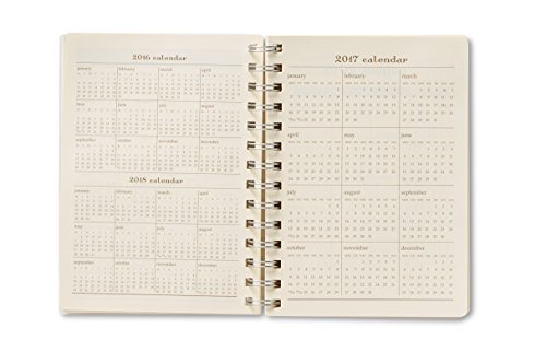 -. Feature : Spiral day planner runs from August 2016 through December 2017. / Unique week-at-a-view format. Features monthly views too. / Dimensions: 5 1/2" x 7 1/2"