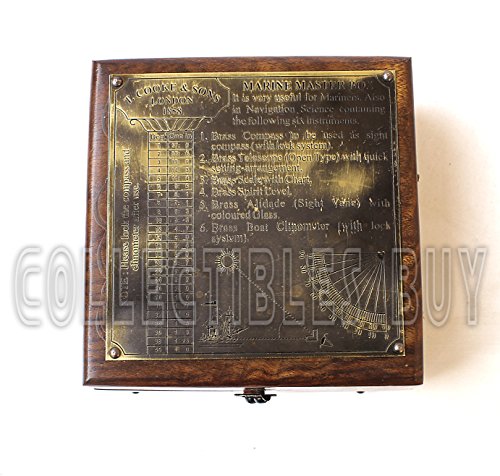 Six Instrument Marine Master Box - Compass Telescope Scale Chart Spirit Level Alidade