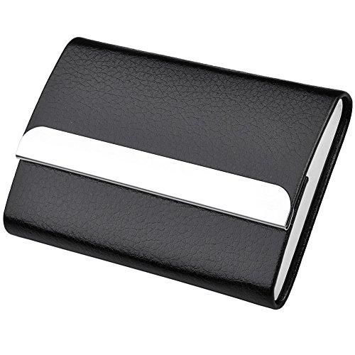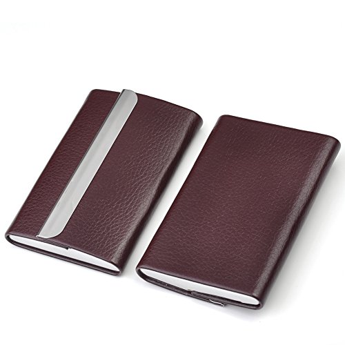 -. Feature : Stainless steel with PU leather surface,Stylishly designed with high quality leather & stainless steel, ensuring a professional, great looking finish and make the case durable / Keep your cards clean and unbent,magnetic shut and interior soft lining provide more protection to your card / Can be used to carry business cards, credit cards, ID card and note.Compact design to fit easily into your pocket / Size:9.6*6.5*1.7cm/3.8 / Package Includes:1x Card Case