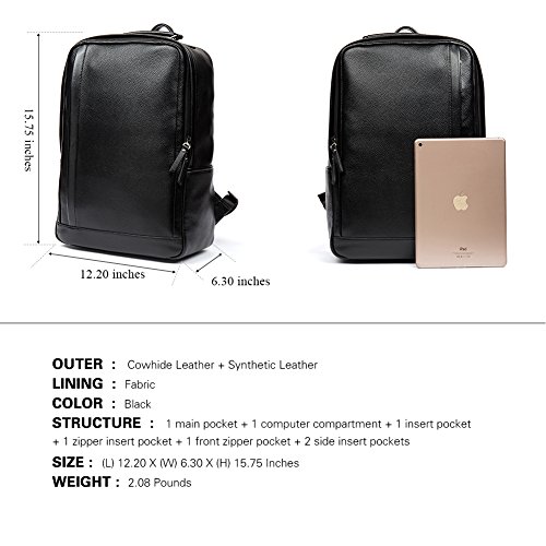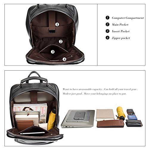 -. Feature : [DURABLE & SIMPLE] - External made with cowhide leather and synthetic leather, soft and comfortable.The double shoulder straps comes with durable material design,easy to carry throughout all day.This college backpack is a simple external design without any patterns, very simple but fashion and you can choose the one you like / [LARGE CAPACITY & DUAL COMPARTMENT] - A good organized laptop backpack with 1 quick-access & large main pockets for your books,folders,ipad,phone,cords and cards.Dual compartment can carry more things as you want,1 front zipper pocket and 1 inner zipper pocket to keep your phone,ipad and gadgets safe,1 large main laptop compartment fits books,lunch,a light jacket and other carry-on essentials,2 insert pockets in both sides are to keep your other trivial things / [ROOMY COMPARTMENT] - This travel laptop backpack approximate dimension is 12.20 inches x 6.30 inches x 15.57 inches(LxWxT),Laptop compartment fits under 14 inches,holding your laptop(can hold laptop under 14-inch in main compartment),tablet,Macbook Air/Pro,ipad,phone,pen,notebook,wallet,umbrella,books,folders,and other things as many as possible / [ADJUSTABLE SHOULDER STRAP] - Custom-fit strap design for a truer, more comfortable fit.The laptop knapsack shoulder strap is padded design,its length is 23.23 inches with flexible attachment points are contoured for a men's torso for a perfect fit for any size or shape / [LIGHTWEIGHT & EASY TO USE] - The simple trendy durable laptop backpack is made from cowhide leather,travel light with this backpack,streamlined compartments and solid construction,quick-access pockets,easy to use and carry. Dear customers, to select more handbags, cross-body bags, backpacks, purses and wallets, you are warmly welcome to our store by clicking store name-Shanyi Travel above mentioned.