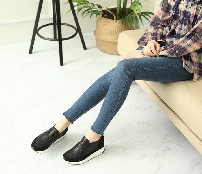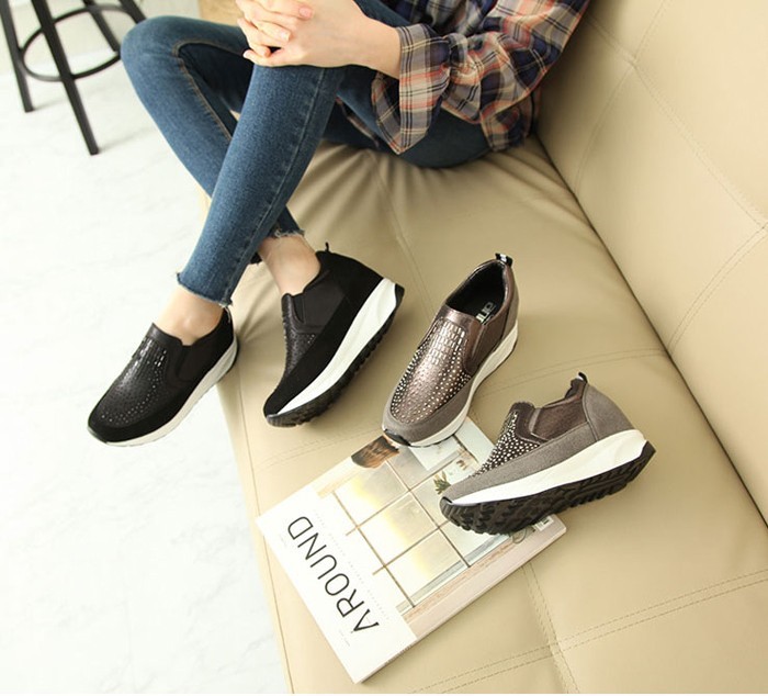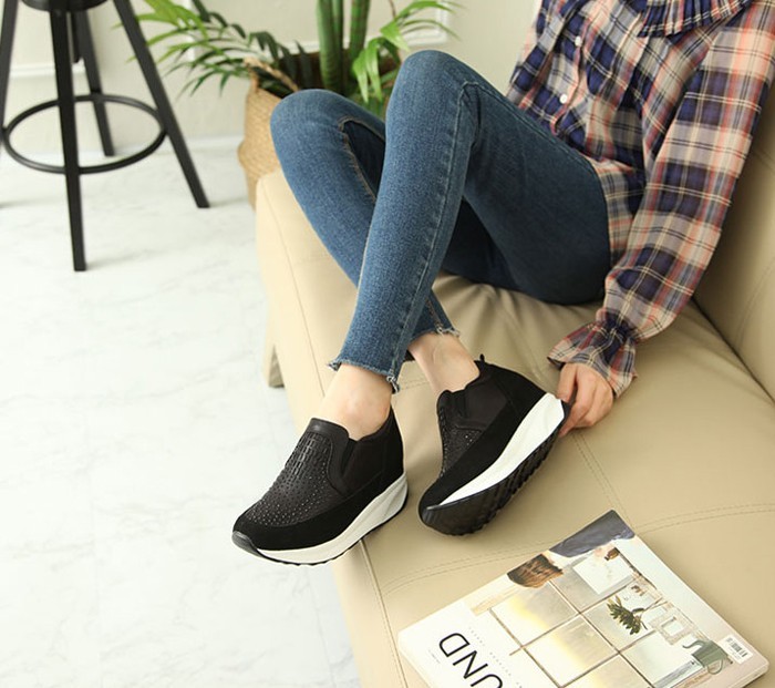 商品名:スリッポン レディース スニーカー ラインストーン キラキラ 厚底 2018 夏 ファッション 靴 婦人靴