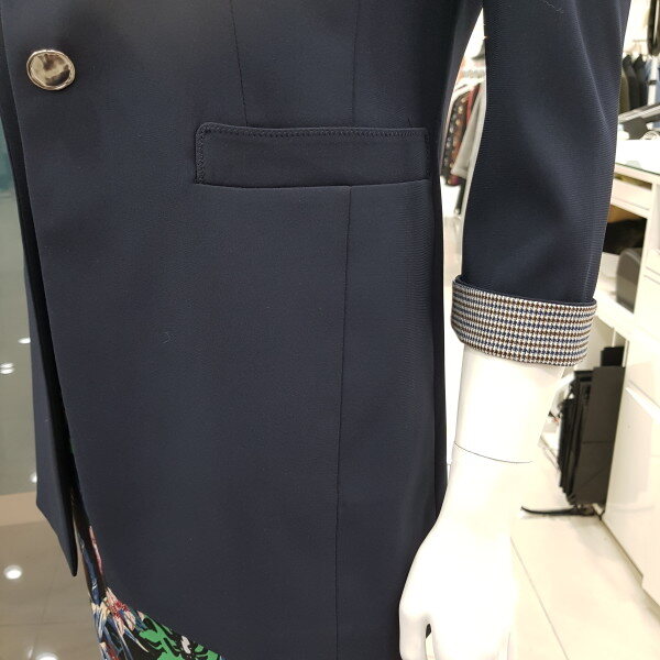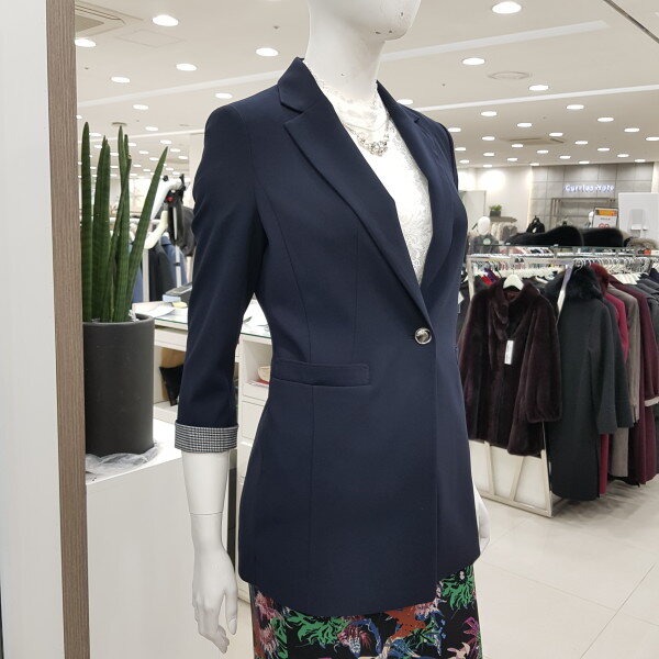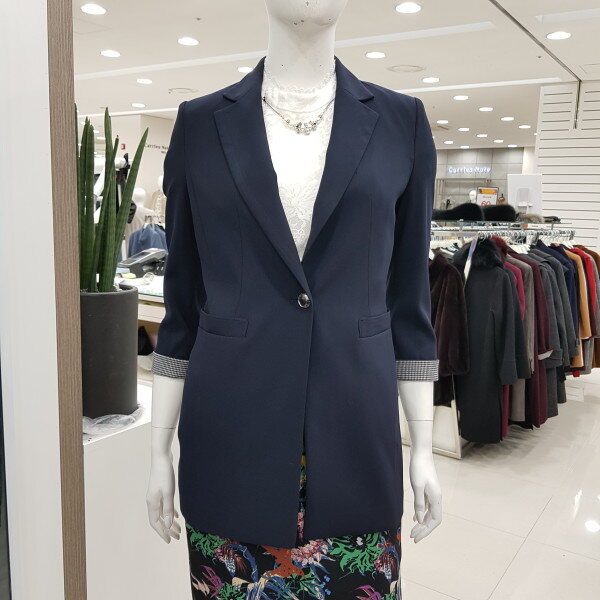 심플한 라인의 자켓으로 캐쥬얼이나 정장 어디에나 코디 가능한 신축성 있는 자켓입니다.소매라인은 칠부로 소매끝단에 체크 포인트를 줌~~