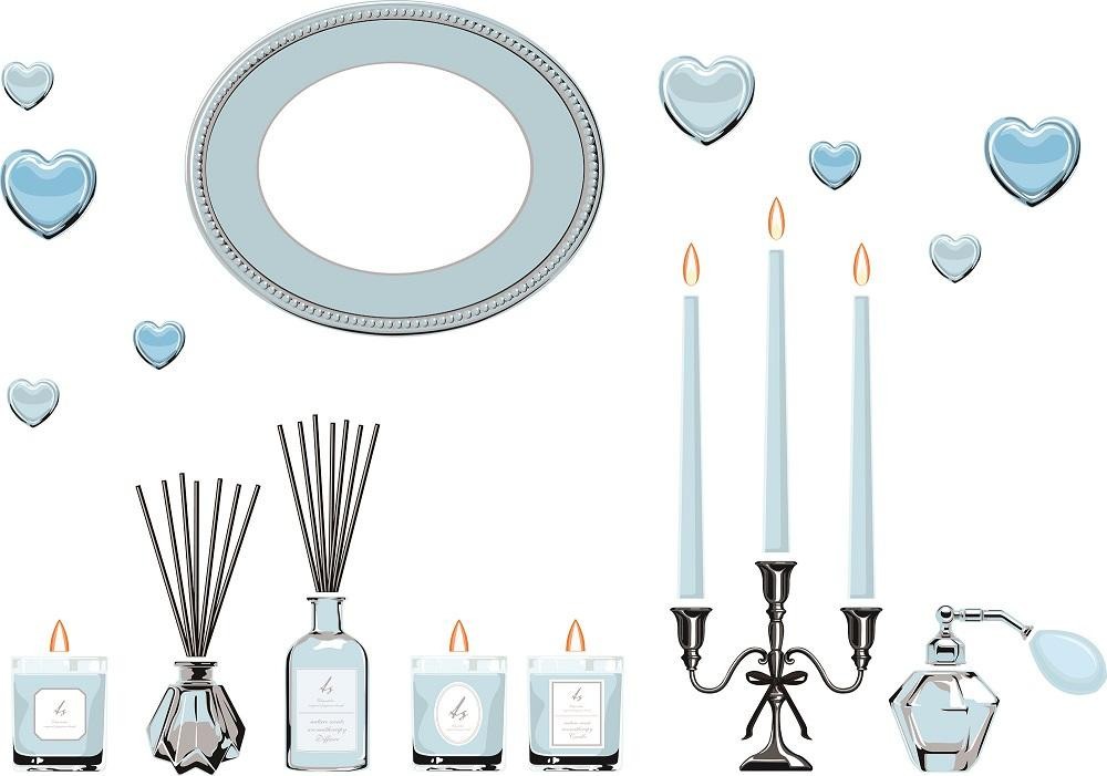まるでお洒落なホテルやフランスのお部屋のインテリアのような、エレガントなアロマグッズを描いたウォールステッカーです。