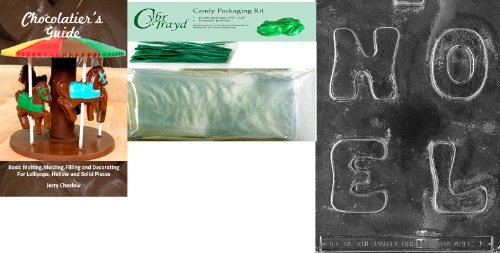 Cybrtrayd Noel Chocolate Mold with Chocolatier's Bundle of 25 Cello Bags, 25 Green Twist Ties and Chocolatier's Guide