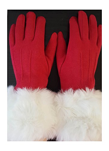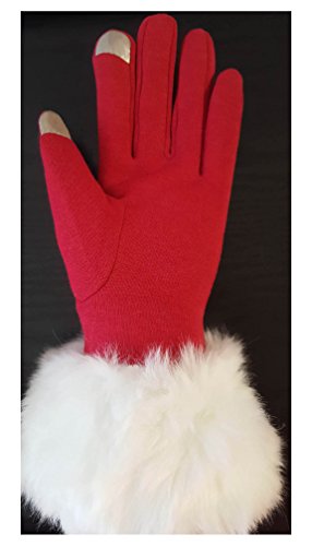 Product DescriptionGloves red with touch screen finger tips white faux fur cuffs. Fleece Lined cotton-poly blend ladies gloves.0