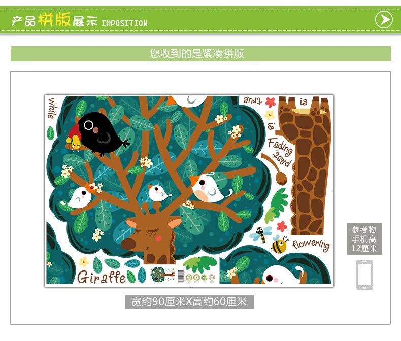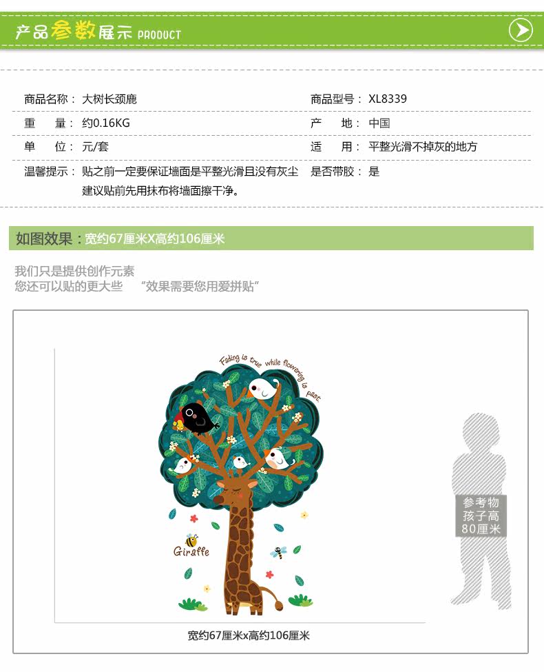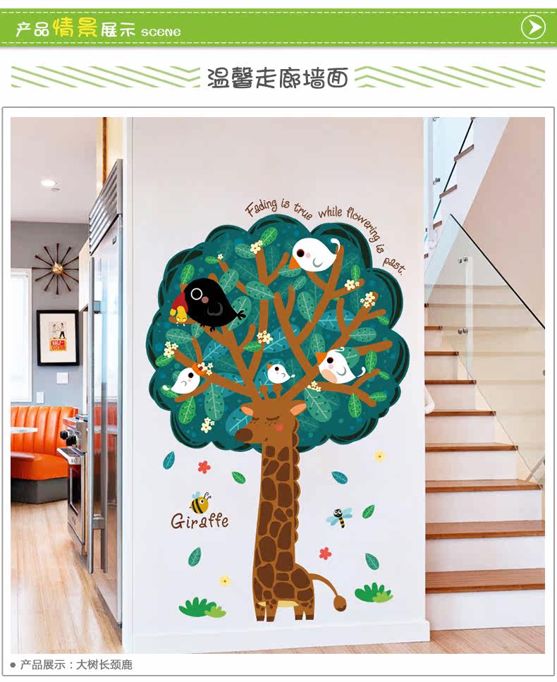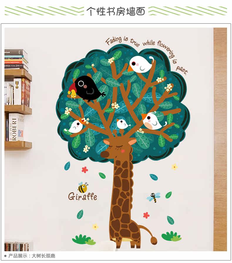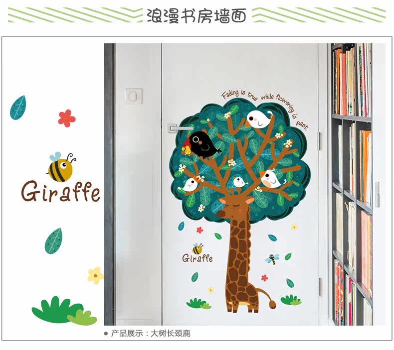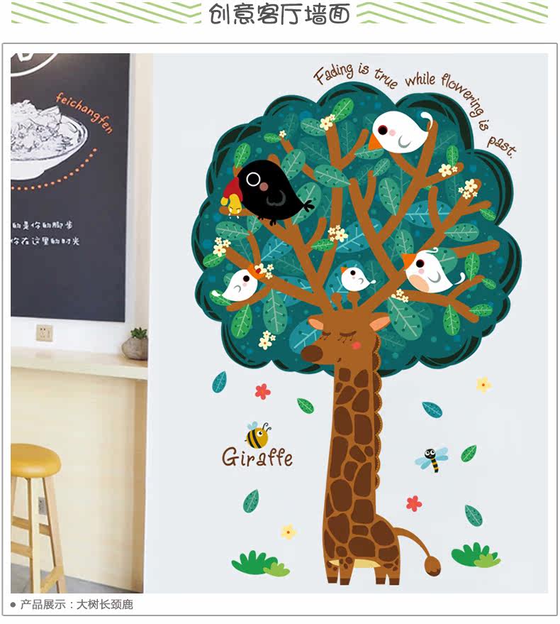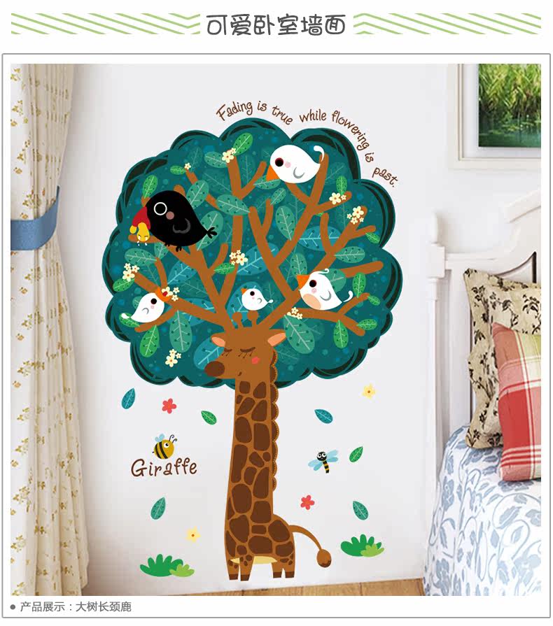 大树长颈鹿可移除墙贴宝宝卧室墙壁装饰品儿童房间幼儿园墙上贴画