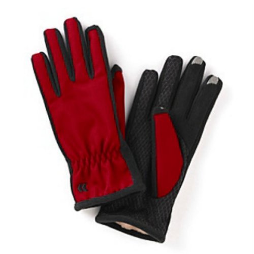 These great looking red and black Isotoner Smartouch 2.0 gloves are compatible with touch screen phones and ipods.? If you wear these gloves, you don't have to freeze your hands to answer your phone or text!!? These are part of the new generation of tech gloves with a third finger technology! - Size:? Womens Medium/Large