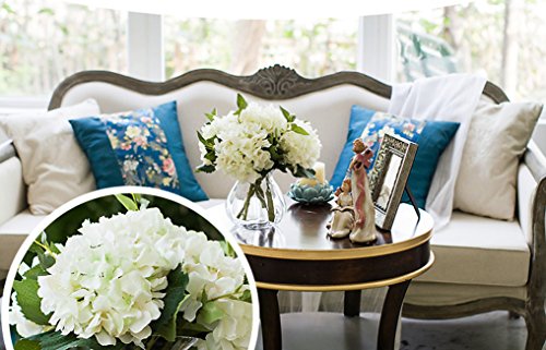 Lannu Artificial Silk Hydrangea Flowers Fabric Floral Natural Fake Hydrangea Flower Wedding Home Flower Wall Decor Pack 2, (Cream White)