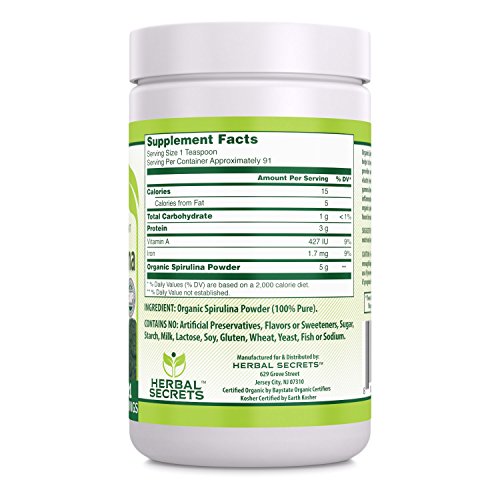 Herbal Secrets Organic Spirulina Powder 1lb (16 Oz)