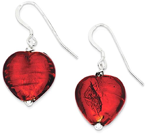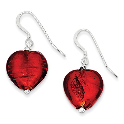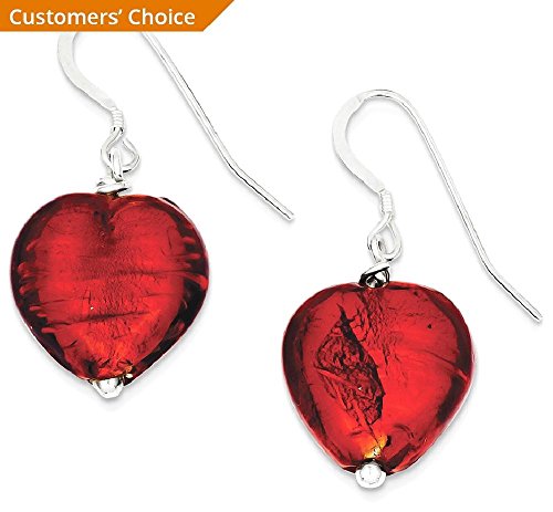 -. Title : ICE CARATS 925 Sterling Silver Red Murano Glass Heart Drop Dangle Chandelier Earrings Love Fine Jewelry Gift Set For Women Heart