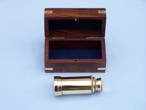 Handcrafted Nautical Decor Scouts Brass Spyglass Telescope with Rosewood Box
