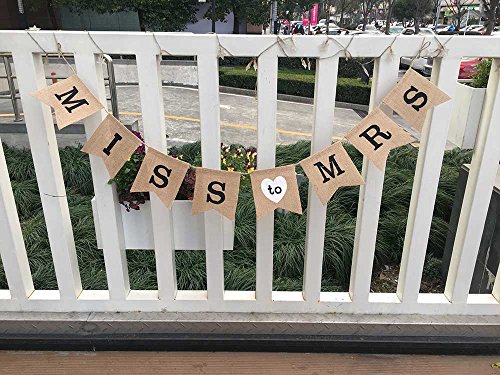 dealzEpic - MISS TO MRS Rustic Burlap Bunting Banners | Country Style Bridal Shower/Wedding Party Decoration - 8pcs Swallowtail Shaped Banners