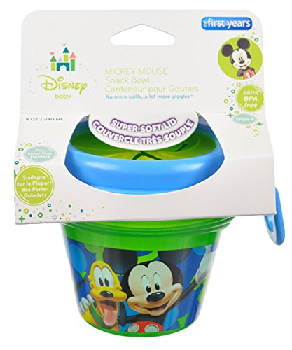 Studio : The First Years ReleaseDate : 2014-02-18 Publisher : The First Years Binding : Baby Product Product Description The first years snack bowl features disney characters your child will love and is the perfect solution to end messy snacking. The screw on lid features soft flaps that allow your child to access their favorite snacks without spilling. Plus, the snack bowl fits in most cup holders for on-the-go snacking and strolling. Fewer spills happen as the one-piece lid holds in nearly every snack piece, even if dropped or tilted. The bowls are dishwasher safe and bpa free. 0