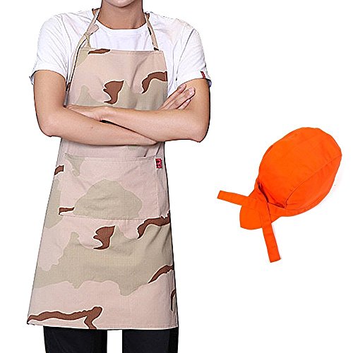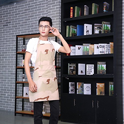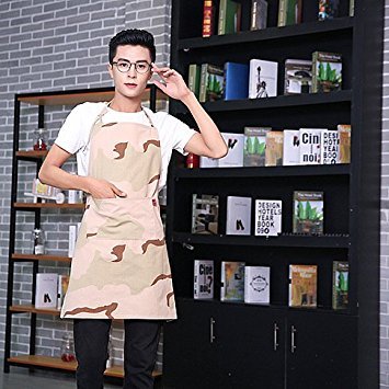 MEI SANG Original painting work apron , with Pockets and Adjustable Neck Straps 100% Cotton Chef Aprons Pattern Military Camouflage for women and men To send a hat (apron FBA)