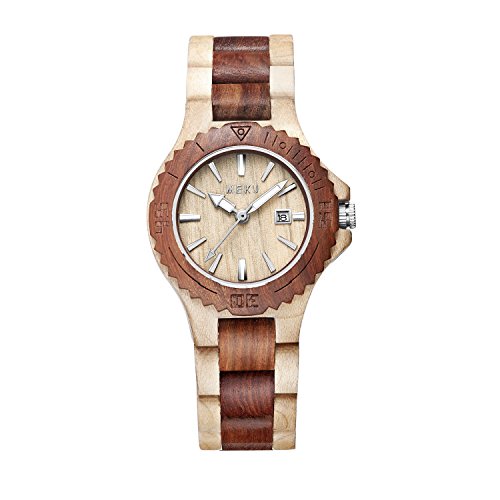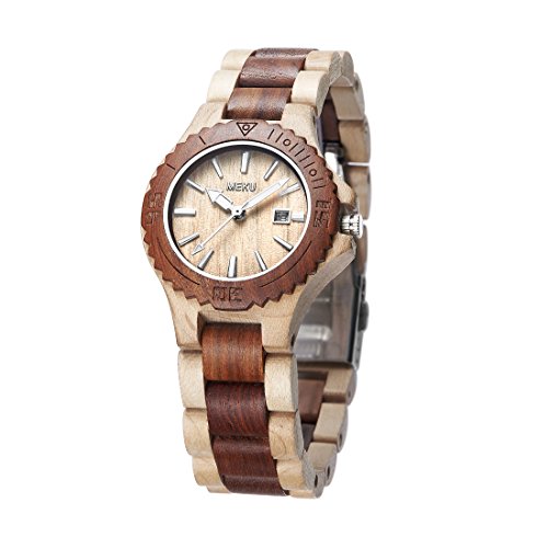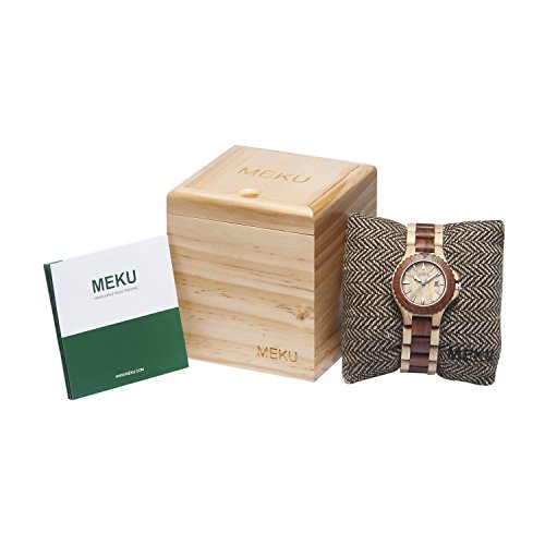 MEKU Women's Handcrafted Wood Wrist Watch Sandalwood Timepiece Elegant Wooden Wrist Watch Date Beige