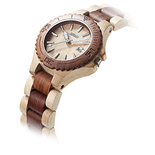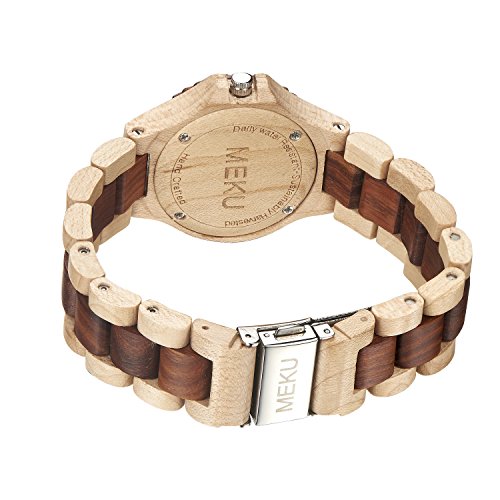 - ✔ MADE FROM 100% NATURAL SANDALWOOD. We use durable Japan quartz movement, with two-tone color design, the particular wood watch will make you stands out and is a new fashionable way to show your personal style, it is very easy to match your suit as well, no matter a causal or a business occasion , worn as a small sculpture on the wrist - this piece just asks to be a conversation starter.