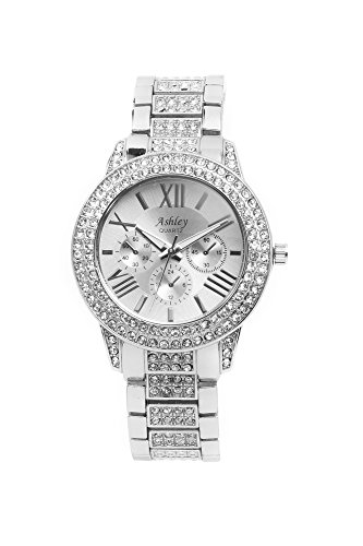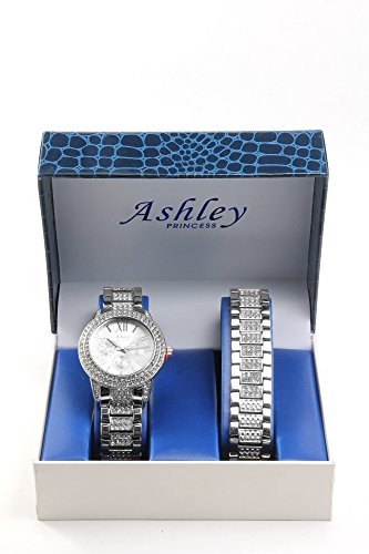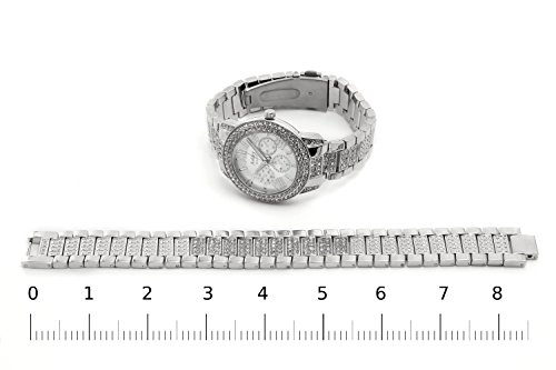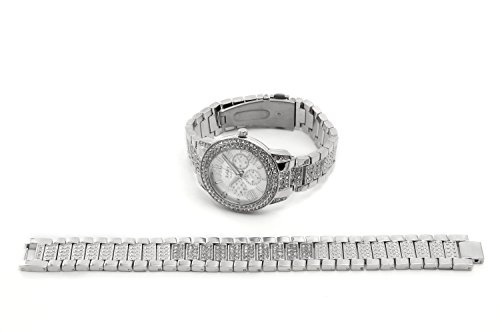 Silver - Ice Out Bling Watch With Clear Stones Ladies Watch Gift Set -