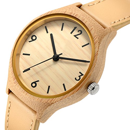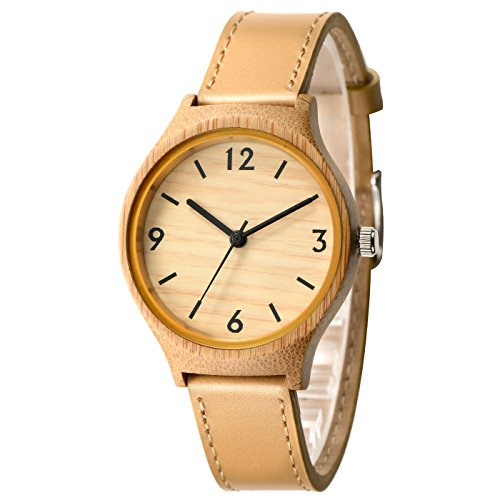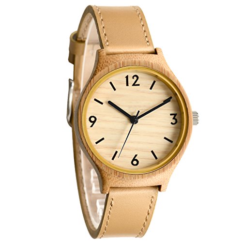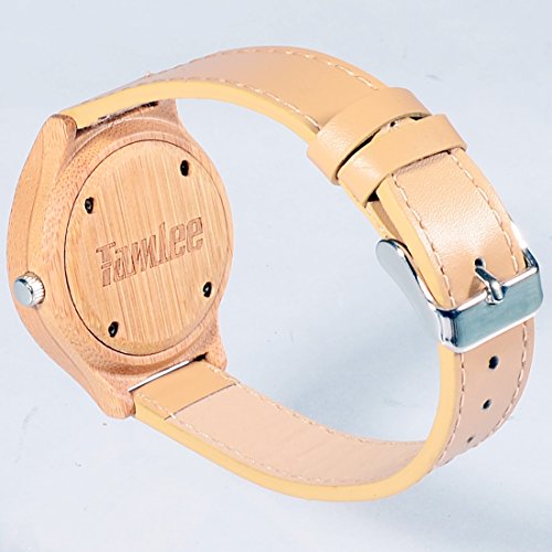 Tamlee Women's Bamboo Wood Quartz Soft Leather Strap Watch