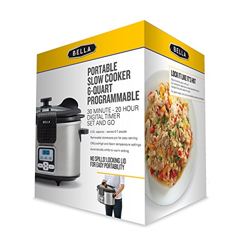 Featuring a locking lid that seals tight for travel to family dinners, potlucks, and other events, the 6-Quart Programmable Slow Cooker simplifies meal planning and preparation by slow cooking meats and veggies to lock in moisture and flavor. The programmable time and temperature settings ensure a perfectly cooked meal every time, while the stoneware pot is removable for easy kitchen-to-table serving. When it's time to clean up, the pot and tempered-glass lid can go right in the dishwasher. And because the slow cooker uses less energy than your oven, it's an Eco-sensitive choiceFeature