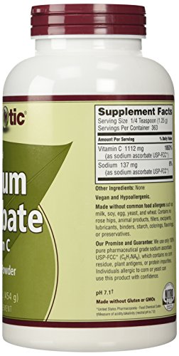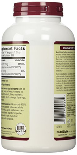 -. Binding : Health and Beauty -. Brand : Nutribiotic -. EAN : 0728177004514 -. Feature : Vitamin C has several beneficial purposes including developing and maintaining healthy skin and bones, and plays important roes in many biochemical reactions / Manufactured by dissolving pharmaceutical grade ascorbic acid with sodium hydrogen carbonate / Sodium helps regulate the amount of water in the body. It also aids the movement of sodium into and out of cells, which plays a critical role in many bodily functions -. IsAdultProduct : 0 -. Label : Nutribiotic -. LegalDisclaimer : These statements have not been evaluated by the Food & Drug Administration. This products is not intended to diagnose, cure, mitigate, treat, or prevent any disease. -. Manufacturer : Nutribiotic -. Model : NBC04514 -. MPN : 451 -. NumberOfItems : 1 -. PackageQuantity : 1 -. PartNumber : 451 -. ProductGroup : Health and Beauty -. ProductTypeName : HEALTH_PERSONAL_CARE -. PublicationDate : 2014-03-20 -. Publisher : Nutribiotic -. ReleaseDate : 2014-03-17 -. Size : 16 oz -. Studio : Nutribiotic -. Title : Nutribiotic Sodium Ascorbate Powder, 16 Ounce -. UPC : 728177004514