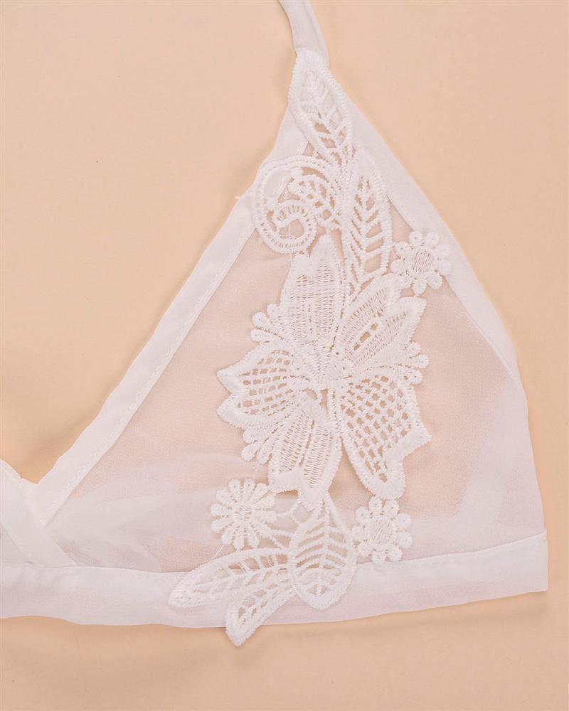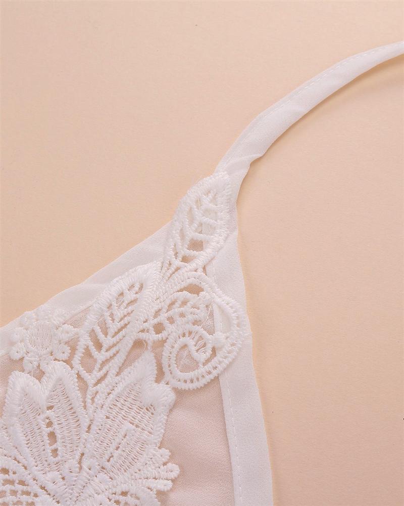 V-Neck,See Through,Chiffon,Lace,Halter,Bandage
