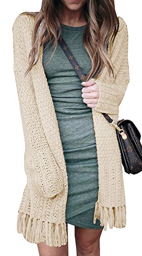 Imily Bela Women's Long Sleeve Tassel Hem Knited Sweater Chunky Cardigan Outwear