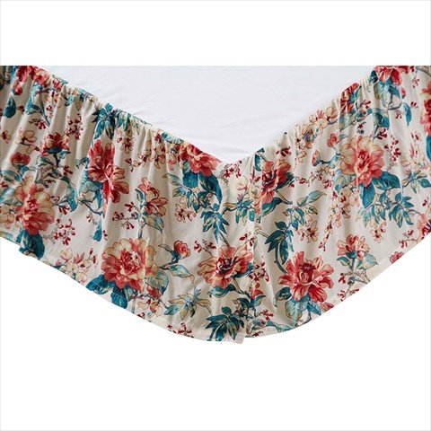 Isabella King Cotton Floral Pattern Dark Teals Creme Background Bed Skirt 78 x 80 x 16 Inches