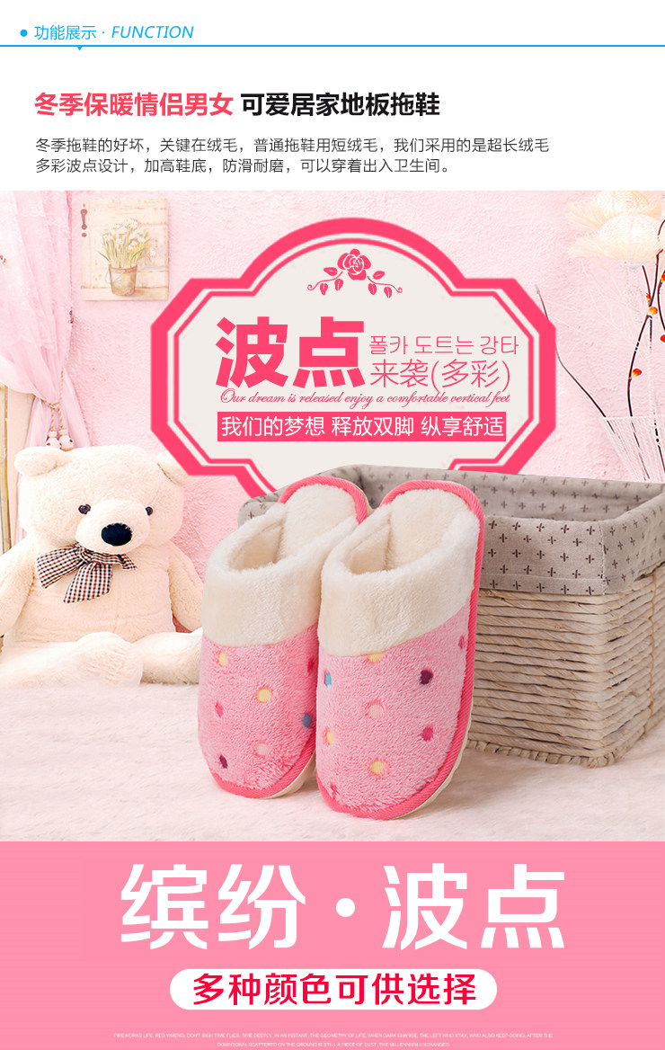 冬季保暖情侣男女可爱居家地板拖鞋 厚底家居卧室内防滑棉拖